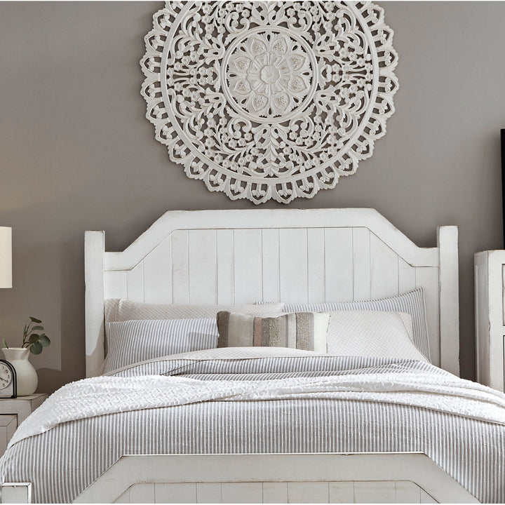 Don't be fooled by the casual design as it brings elements of romantic detail to any room. Its clean lines boast well in a beach setting or to the extreme mountain cabin and anywhere in between. It has just enough surface texture to work with a multitude of bedding styles. This bed features a unique angular shape with a vertical wood-planked design on the headboard and footboard. Constructed of solid pine with a dry-brushed white finish. Beachcrest Home™ Size: King