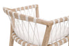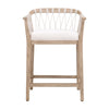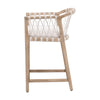 The Pacific Counter Stool pairs artisanal texture with refined craftsmanship. Its hand-wrapped polyolefin rope design complements a solid mahogany wood frame, creating a coastal-inspired yet enduring silhouette. The fixed seat cushion, upholstered in high-performance fabric and finished with piping detail, offers both comfort and tailored style. An L-shaped metal footrest cover enhances durability while adding a sleek contrast to the stool’s natural materials.