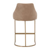 The Parissa Counter Stool combines sculptural form with refined comfort. Its wide curved back provides an inviting, supportive silhouette, while the decorative metal base lends a modern industrial edge. Upholstered in vegan leather that mimics the texture and richness of genuine hide, the seat offers both sophistication and practicality. Built with steel and LVL construction, this stool balances strength, comfort, and contemporary style.