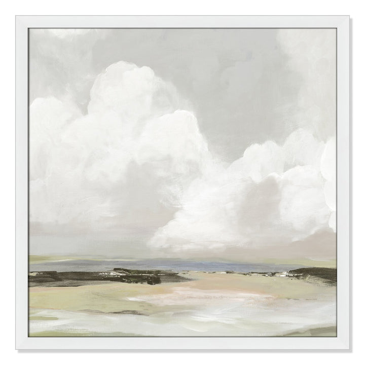 The billowing clouds, resting above the stillness of the ground below, take center stage in this landscape image. This art piece is the perfect abstract to provide an understated update to any room in your home.