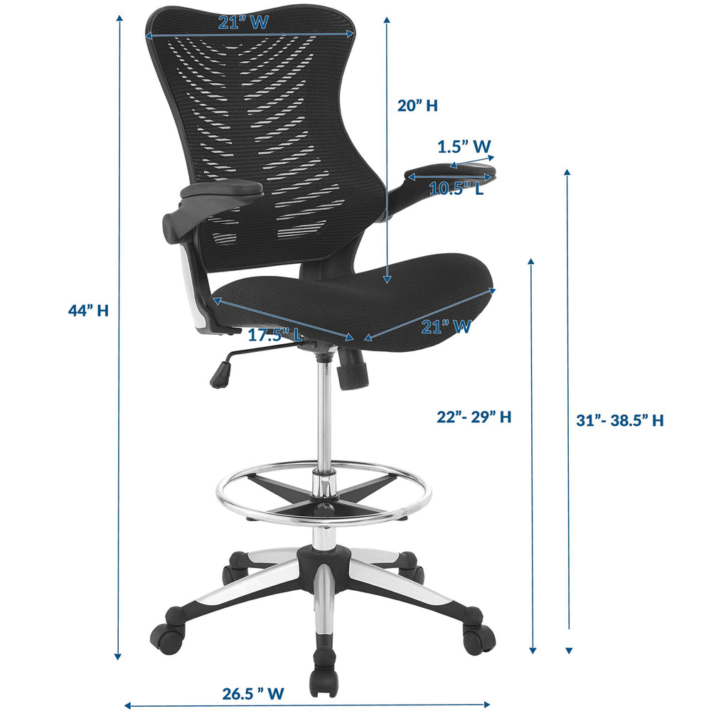 Revitalize your workspace with the Catalyst Desk Chair, designed to blend style with advanced functionality. Its unique butterfly silhouette and ribbed detailing offer a captivating aesthetic while supporting superior posture. The chair features a durable steel foot ring and an extended gas cylinder, ensuring comfort for lengthy tasks. Equipped with five dual-wheel casters and a resilient nylon frame with a striking two-tone base, this chair is both mobile and robust. The padded vinyl armrests provide versatility by rotating up to 90 degrees, adapting to your workflow needs. Additionally, the ergonomically cushioned mesh seat promises comfort tailored for the demands of today's dynamic office environments.