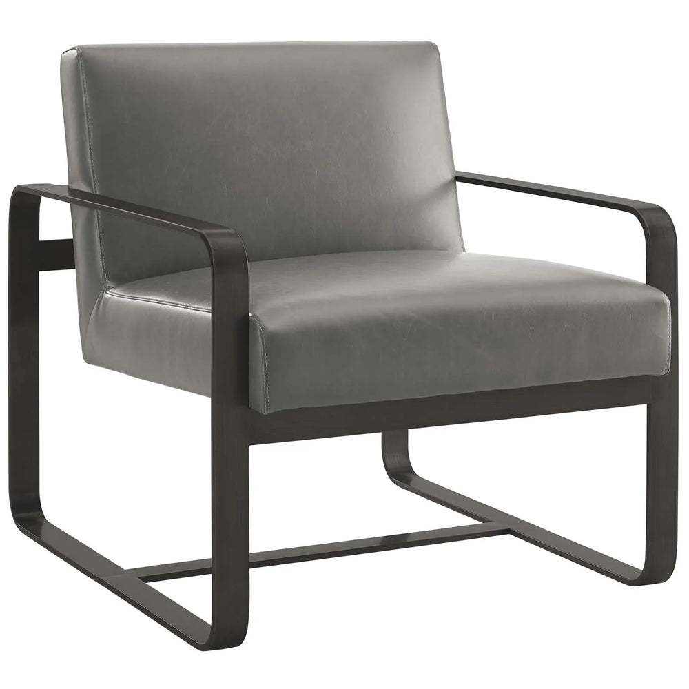 Introducing Sutter, a contemporary-inspired masterpiece that will completely elevate the vibe of your living room, bedroom, or office. With its innovative design and modern charm, Sutter is here to redefine the way you embrace style. Crafted with utmost precision, Sutter boasts an artful frame and an open layout that exudes sophistication. Its streamlined profile, complemented by sleek rounded corners, adds an elegant touch to any space. But it doesn't stop there - Sutter goes above and beyond with its luxurious smooth faux leather upholstery and a stunning gray stainless steel frame, creating a truly captivating visual appeal. Not only does Sutter excel in aesthetics, but it also promises a unique seating experience like no other. Designed to provide maximum comfort, this chic lounge chair is perfect for inviting guests into a realm of relaxation and leisure. Whether it's a cozy movie night or a breezy afternoon read, Sutter has got your back, quite literally. So why settle for ordinary when you can surround yourself with extraordinary? Embrace contemporary inspiration with Sutter and enhance your space with its unparalleled beauty and undeniable charm. Shop now and discover the perfect blend of comfort and style.
