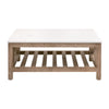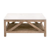 The Spruce Square Coffee Table pairs the rugged charm of reclaimed pine wood with the clean refinement of a solid quartz slab top. The trestle-style base highlights the natural story of the wood—visible knots, textured grain, color variation, and time-worn markings that are inherent to reclaimed materials and celebrated as part of their character. Above, the marble-look quartz surface offers a durable, polished counterpoint with a smooth finish that stands up beautifully to everyday use. Its square profile brings balance and structure to a living space, creating a centerpiece that feels grounded, substantial, and effortlessly timeless.