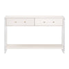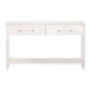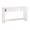 The Sonia Shagreen Console Table blends refined texture with a clean, modern silhouette. Its faux shagreen resin drawer panels and surround capture the look and feel of genuine stingray skin, created by hand-poured resin that naturally results in subtle variations and visible seams—an intentional characteristic of the material. The frame features solid wood elements finished with a wire-brushed technique that highlights organic grain patterns, making each piece visually distinct. Geometric patterned drawer fronts add sculptural interest, while the clear acrylic panel legs bring a crisp, contemporary contrast. A lower storage shelf offers practical display space, and KD construction with a tip kit ensures stability and ease of setup. A statement piece that balances texture, transparency, and tailored craftsmanship.