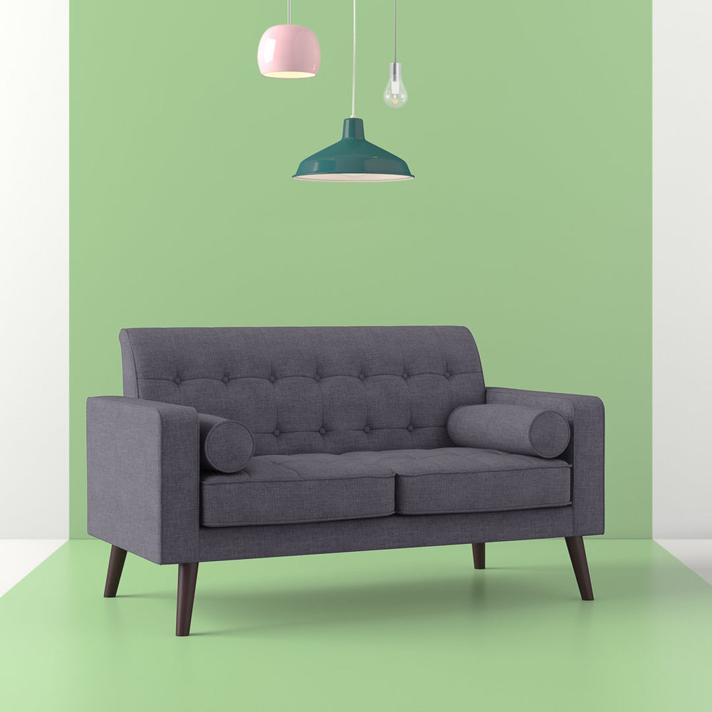Benayah 56.3" Linen Square Arm Loveseat George Oliver Upholstery: Dark Gray