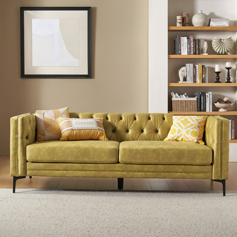 Brinna Contemporary 84" Upholstered Button-tufted Sofa with Metal Legs Wade Logan® Fabric: Mustard Polyester