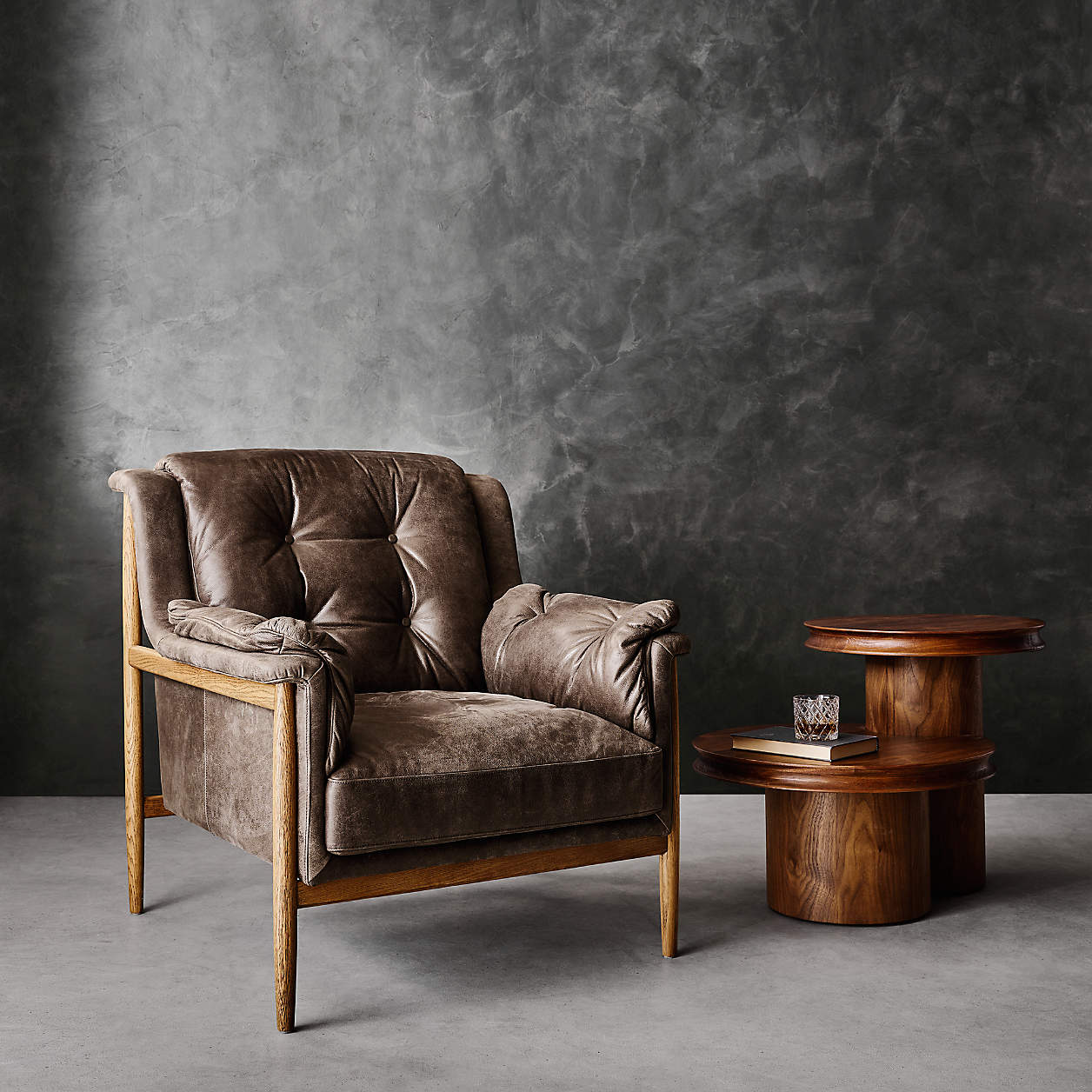 Oro Natural Walnut Wood Tiered Side Table