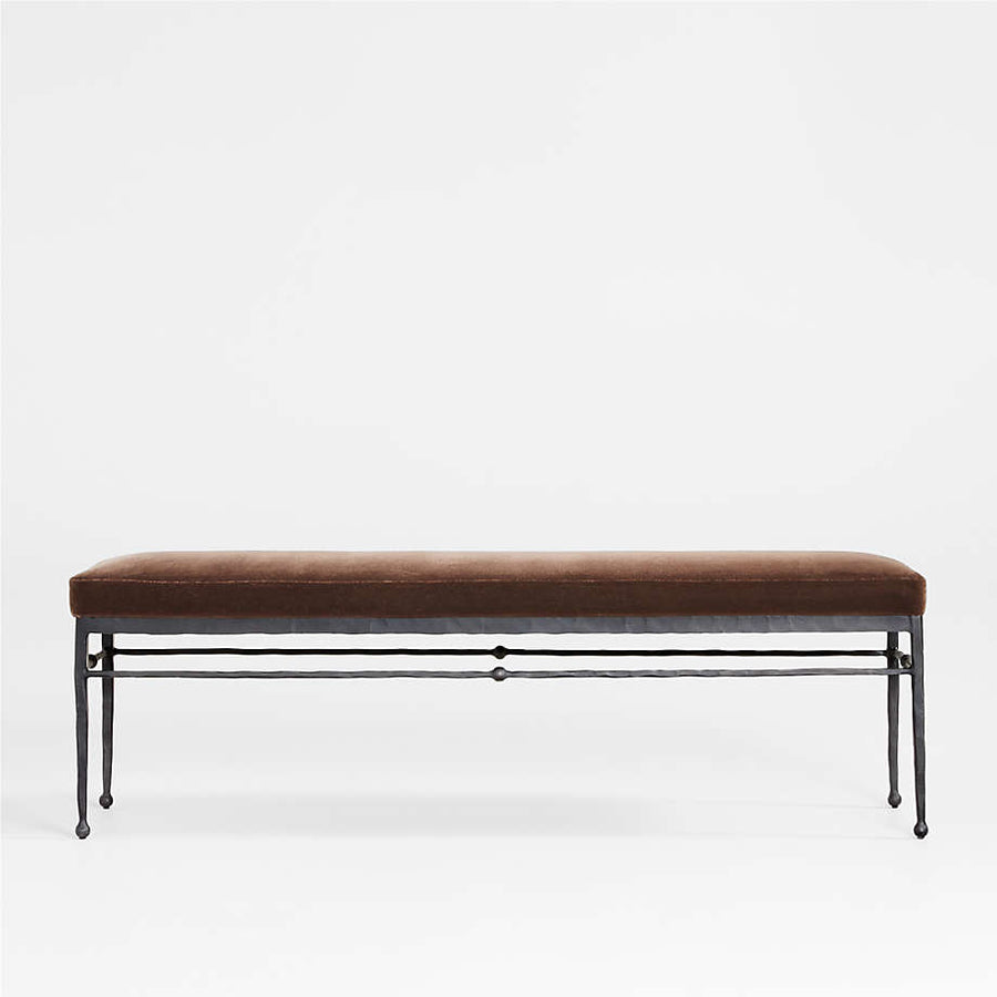 Rodin Brown Velvet Bench by Athena Calderone