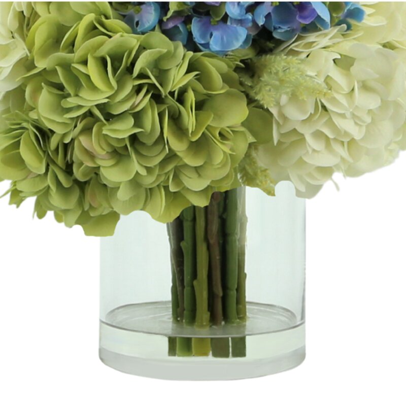 Bring the beauty of nature to the comfort of your own home. Featuring an elegantly crafted mixed hydrangea arrangement with pampas grass and arranged in a vase with acrylic water. The hydrangea arrangement will bring you the joy and beauty of the outdoors without any watering or maintenance needed. Features Handcrafted for lasting beauty Perfect accent for your home or office