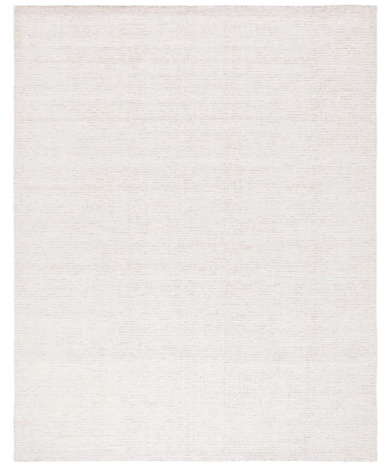 With its neutral color and subtle style, this area rug is ideal for living rooms, entryways, and bedrooms. An all-over ivory and beige color adorn this rug with slight variegation for a touch of texture. Handmade from wool, this piece features a tufted construction and a cotton and latex backing. It has a medium 0.375" pile that's perfect for rolling out in high-traffic living rooms or dining spaces prone to occasional spills. We recommend pairing this rug with a rug pad to prevent it from shifting and sliding underfoot. Hand-curated by Kelly Clarkson. Features Due to the difference in monitor colors, some rug colors may vary slightly. We represent all rug colors as accurately as possible. Due to the handmade weaving technique used to make this item, the final dimensions of the rug may slightly vary. Liquid spills: Use a clean cloth and press firmly to absorb as much liquid as possible. Do not rub! This can set the stain deeper into the rug, making it harder to remove and increasing the chances that the stain will re-appear. Stains: Make a solution of water, white vinegar, and mild detergent. Apply the foam that rises to the top of the solution on the stained area with a clean cloth. Finish using a damp, clean cloth to absorb any residue. For lighter stains or spills on synthetic yarns, sponge-clean the area with cold water and mild detergent. For harder-to-remove stains, professional rug cleaning is recommended. For pet stains, make sure you have absorbed all remaining liquid with a dry paper towel. Then, sprinkle baking soda over the affected area. After about five minutes, spray a solution mix on the affected area. Gently scrub and let sit. Vacuum up the remaining powder.