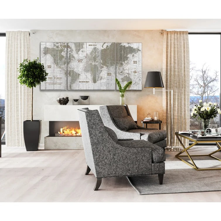 Old World Map 3 Piece Graphic Art on Canvas UnFrame 64"x32"
