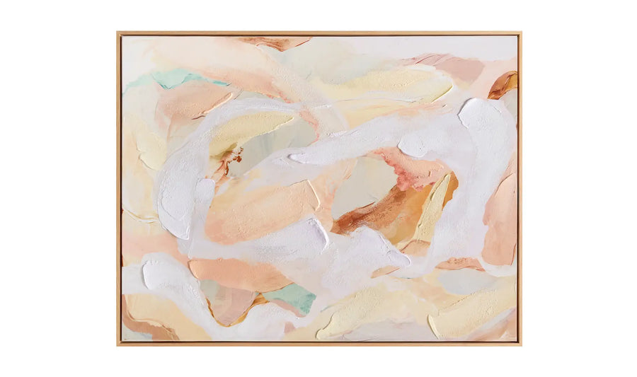 The Sola Framed Painting captures a sense of calm through delicate pastel hues, with each brushstroke adding texture and dimension. This contemporary abstract piece balances softness and structure, offering a refined, understated elegance to any space.
