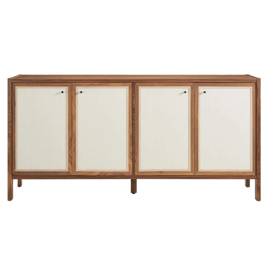 Elevate your decor with the modern Capri Sideboard, a large and spacious cabinet that opens up to versatile storage options. This piece effortlessly transitions from a sideboard storage cabinet to an elegant credenza, crafted with durable particleboard and MDF, finished with a wood grain laminate for a touch of organic aesthetics. Its linen-textured doors, equipped with soft-close hinges, reveal two storage spaces for all your needs. Ideal as a storage cabinet in your entryway or hallway, it also functions seamlessly as a centerpiece of living room furniture or as a buffet cabinet. With non-marking glides to protect your flooring, this credenza cabinet is a quintessential addition to any living space or dining room, designed for easy assembly and to provide a sophisticated solution for keeping your home organized and stylish. Assembly Required.
