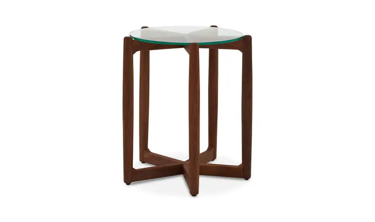Slender and serene, the Andy side table’s circular shape will create a calming flow in your space. Its five-pointed base made from solid walnut is only the beginning with this beauty, as its subtly sculpted touches rise above the rest. A window into leisurely gatherings, the tempered glass tabletop is a showcase for the detailed woodgrain, as well as a reflective expansion for your space. Pair Andy with your favorite accent chairs and sofa as a tranquil focal point.