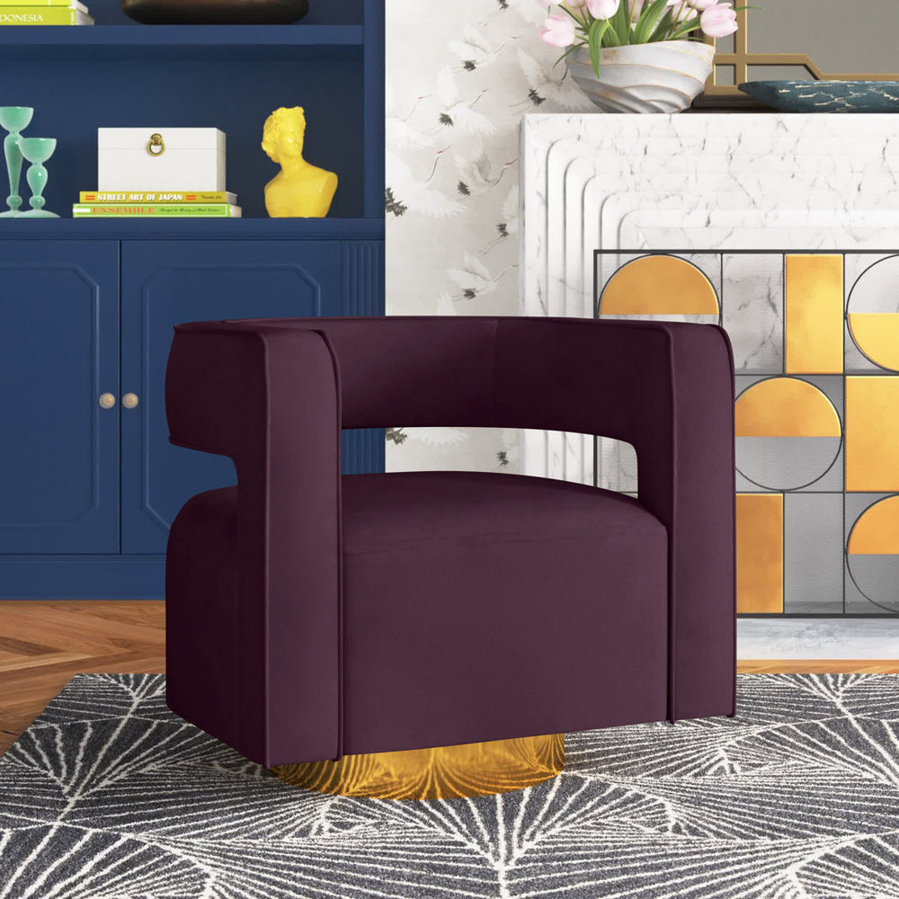 Aysha Velvet Swivel Barrel Chair Willa Arlo™ Interiors Fabric: Purple Velvet
