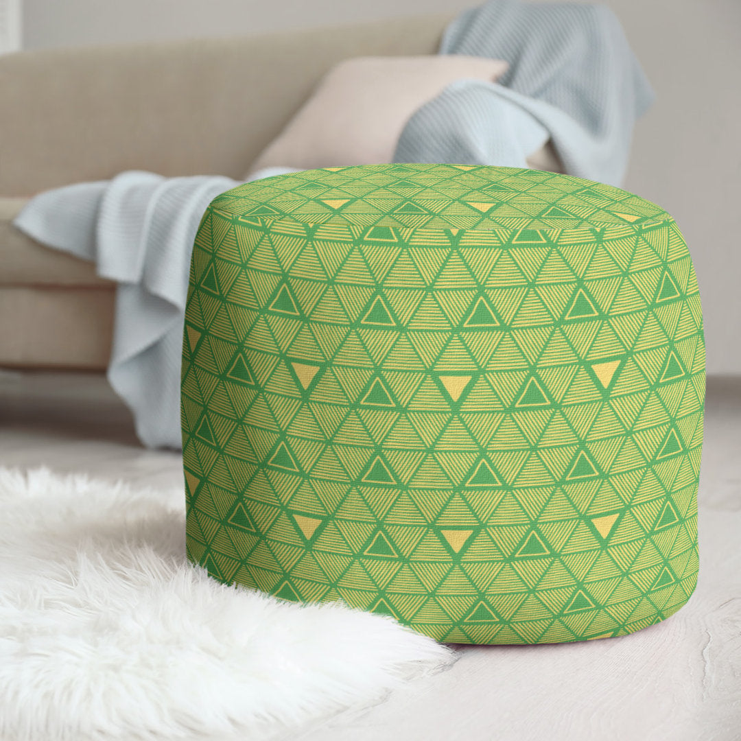 Full Color Hand Drawn Triangles Pouf East Urban Home Upholstery Color: Green/Yellow