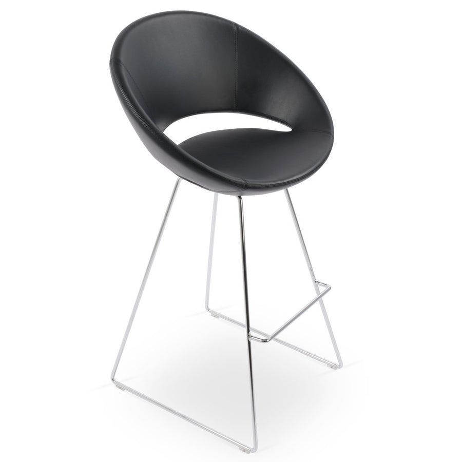 This product is a contemporary dining chair with a comfortable upholstered seat and backrest on a chrome steel sled base. The steel sled base can be finished in black or white powder coating. Each leg is tipped with a plastic glide embedded into the metal wire. The seat has a steel structure with "S" shape springs for extra flexibility and strength. This steel frame is molded by injecting polyurethane foam. The Crescent seat is upholstered with a removable zipper enclosed. The chair is suitable for both residential and commercial use. The crescent wire was designed by Tayfur Ozkaynak.  sohoConcept Upholstery: Leatherette-Black, Seat Height: Bar Stool (29" Seat Height)