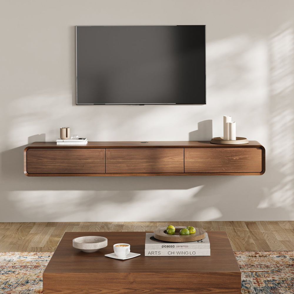 Randalstown Floating TV Stand, Entertainment Center with 4 Drawers, Solid Wood, Fully-Assembled Hokku Designs Color: Dark Brown Overall Entertainment Center Width - Side to Side: 62.99''