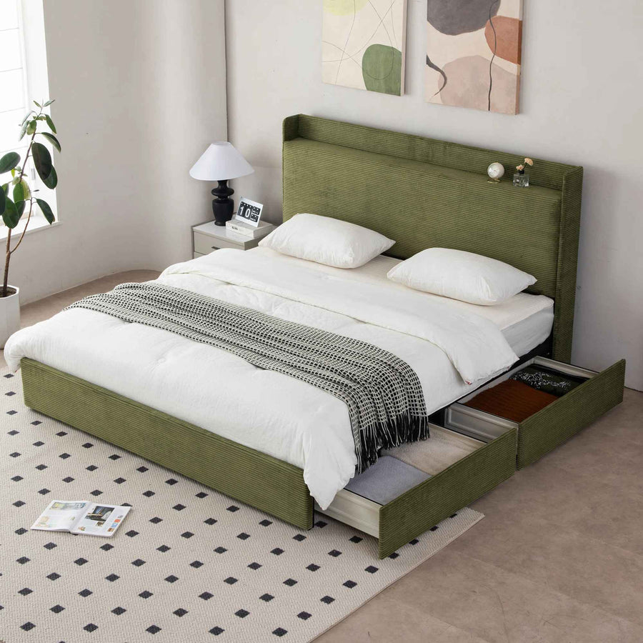 Upholstered Platform Bed with 4 Storage Drawers And Storage Headboard-King