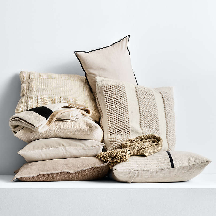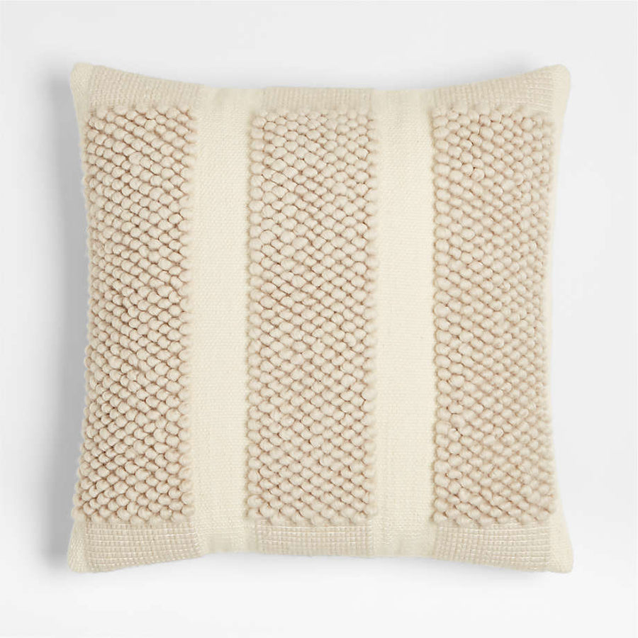 Bubble Handwoven Wool Striped Ivory Throw Pillow Cover 23x23
