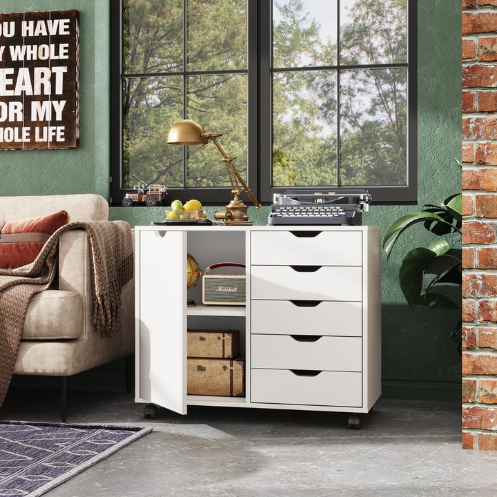 Gebhardt 5-Drawer Lateral Filing Cabinet Wade Logan® Color: White