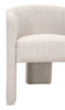 The Hall Arm Chair showcases a refined balance of simplicity and artistry with its distinctive three-leg design and tailored linen blend upholstery. The stain-resistant treated fabric offers practical durability while maintaining a soft, textured feel. Subtle curves and a sculptural silhouette make this chair a striking yet versatile piece, blending comfort and modern craftsmanship in equal measure.