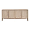The Halloway Media Sideboard from the Essentials For Living Collection highlights the beauty of craftsmanship through texture and detail. Its Acacia veneer finish is sandblasted to draw out the wood’s natural grain, creating a rustic surface rich with tonal depth and organic variation. Each piece carries the authentic marks of its material—knots, cracks, and subtle imperfections that contribute to its character and individuality. Defined by reeded door panels, the design balances artisanal texture with functional versatility. Inside, two spacious storage cabinets feature removable and adjustable shelves for flexible organization, along with dual cord management holes for seamless media setup. A center support leg ensures lasting stability, while an included tip kit offers added safety and security.