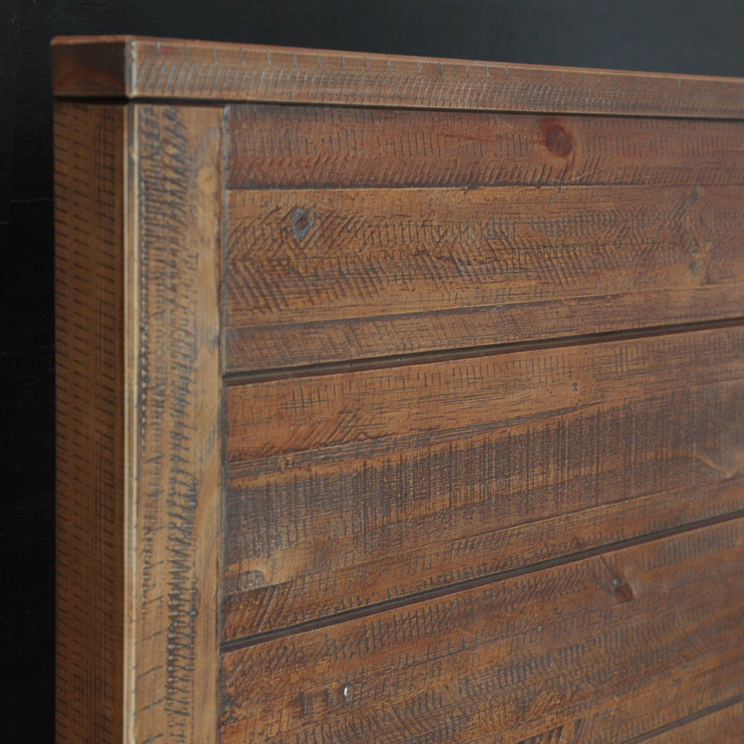 Give your bedroom or guest room a rustic refresh with this clean-lined bed. Made of 100% solid pine wood, this bed features a sturdy frame construction that can last for years. The finish is designed to accentuate the unique grain, knots, and natural textures in the wood panels; and each piece is sanded and distressed by the hand, leading to variations in the color and texture that make every unit unique. This distressed finish is very durable and easy to touch up. Planks span across the headboard to highlight this design’s streamlined silhouette and enhance its modern feel. Give it your spin: pile on pillows and cozy bedding to create your dream color palette – this neutral piece will fit right in. Grain Wood Furniture Size: Twin, Color: Rustic Walnut